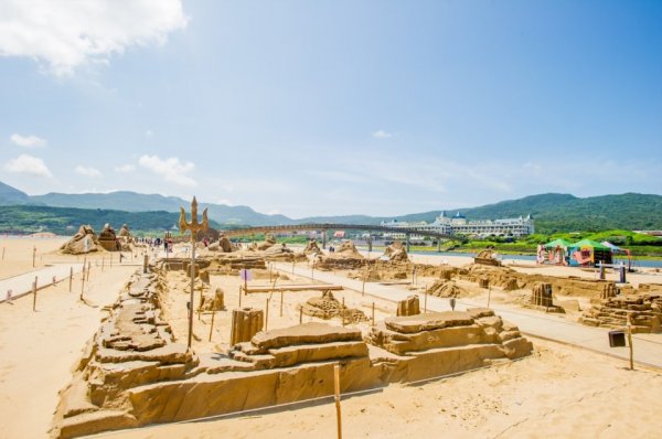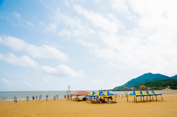 - 福隆海水浴場,是個即使沒有去過也一定聽過的景點!你可能不知道的是,早在日據時代開始,他就已經是個相當知名的海水浴場,穿梭歷史百年後至今仍熱鬧非凡。雙溪河在此入海,使得這片金黃色沙灘被太平洋及雙溪河前後簇擁著,形成內河外海,獨一無二的雙重景觀,再加上一片湛藍海景,有黃金海岸之美譽。連接兩處的彎月型拱橋則有個很美的名字-「彩虹橋」,引領遊客前往這片夏日聖地,而除了碧海藍天的海灣風光,因這裡河面寬廣,水流平穩,無論是風帆、獨木舟或是衝浪等水上活動都非常適合,愛好水上運動的你千萬不要錯過。