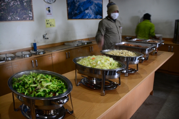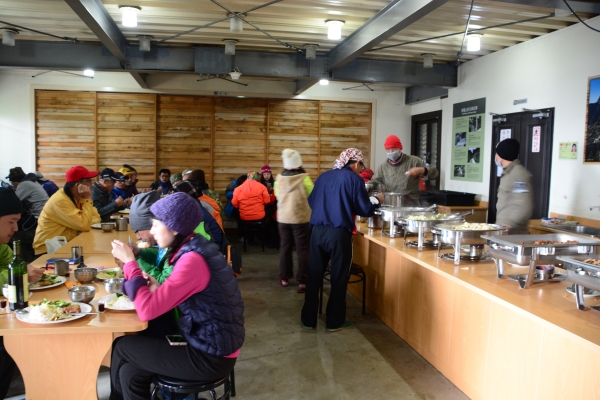最難抽中的山屋。除了在排雲管理中心報到外,到了排雲山莊還要再向管理員報到。自己煮餐依然安排在外,不過有弄個擋風板。