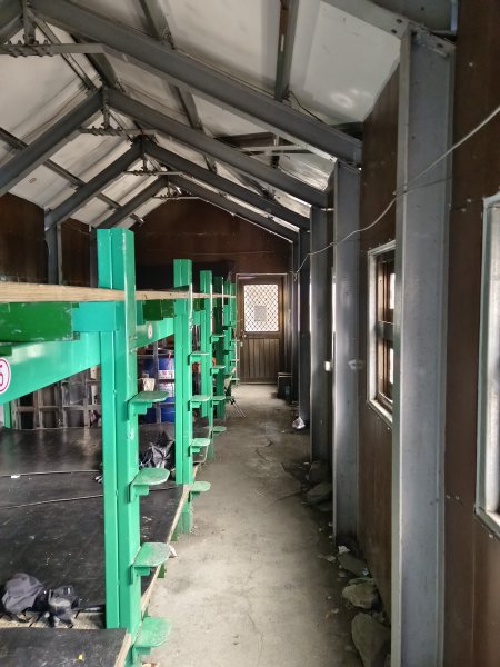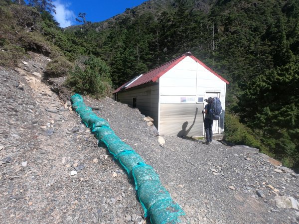 山屋老鼠多,旁邊就是溪水取水方便,但山屋有許多破損地方會灌風進來,門也壞掉剩後門可出入,有睡墊及電源,但環境堪憂,屋外一堆人造垃圾及黃金,廁所黃金爆滿根本無法使用,走八大秀行程的不建議住此,可選中央金。