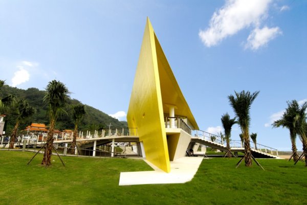 - 炎炎夏日,想來趟消暑的沙灘戲水行,不妨來到外澳服務區,這棟看起來像飛行傘,也像一艘大船的鮮黃色建築是由名建築師姚仁喜設計,極富現代感的外觀具有多重意象,歡迎發揮你的想像力,親身體會這棟建築的特別。