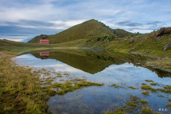 山屋環境優美,有山友繪製水彩貼於牆面,並放置「瘋高山」此本高山醫學書。