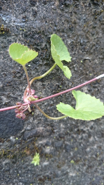 - 單葉,互生,叢生節上,具葉柄,柄長 4~10 公分,被細毛,圓腎形,葉基深心形,葉尖圓鈍形,葉緣為鈍鋸齒緣或淺裂,上下表面無毛或疏被毛