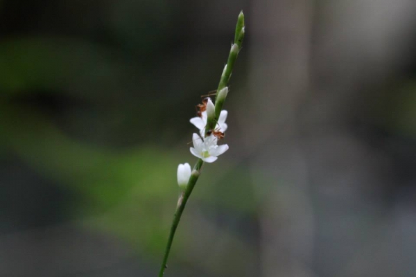 - 花序為穗狀花序,長 10~20 公分,頂生,纖細,花疏生,容易落下,花白色