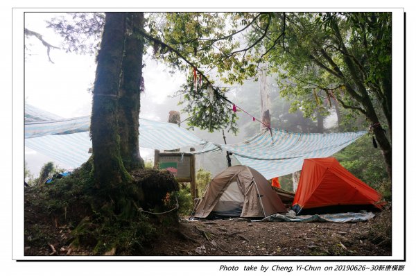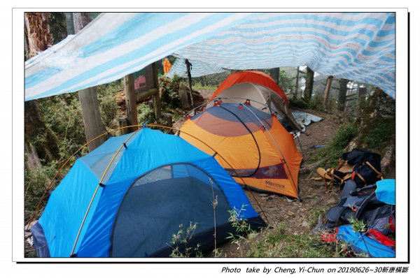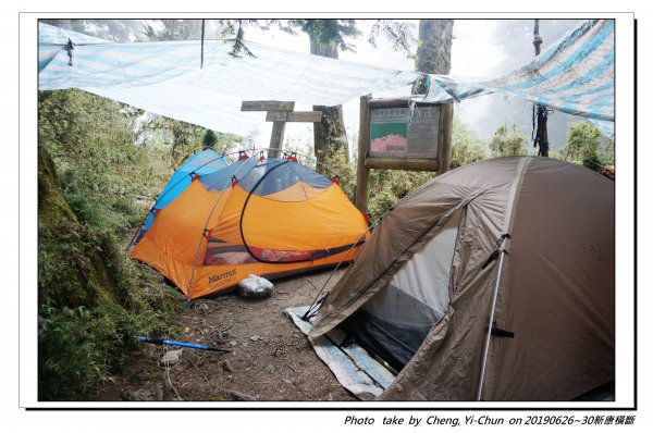 上營地即路徑通過處,有帆布天幕,可搭2Tx2