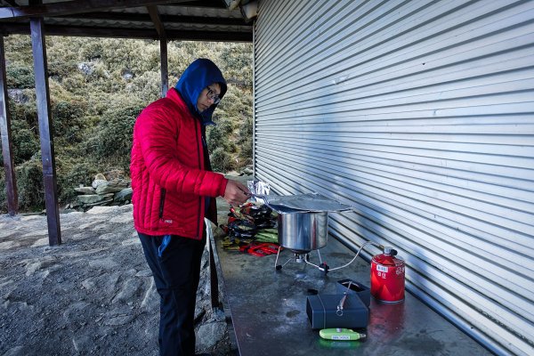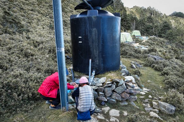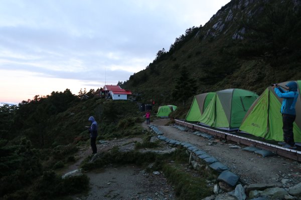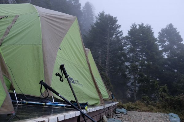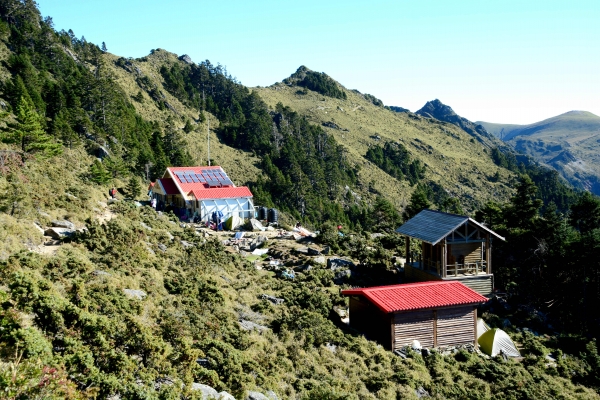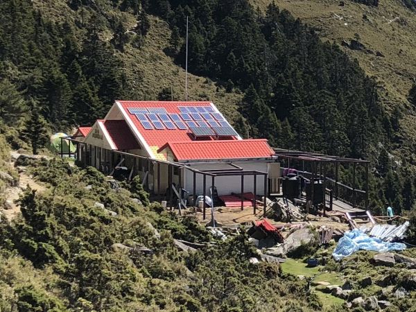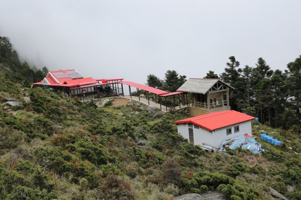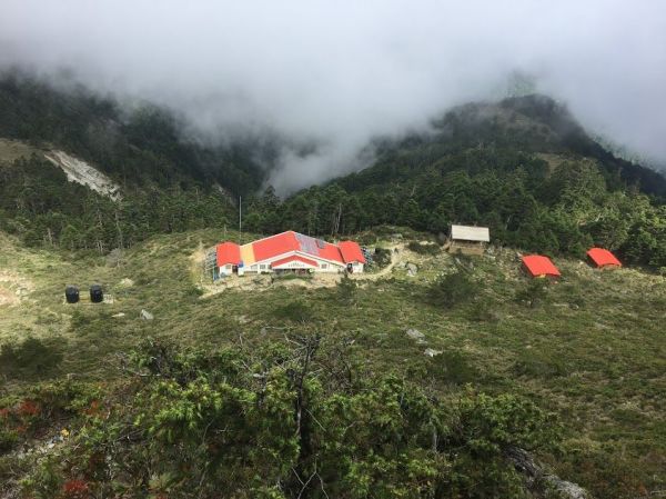 山屋狀況不錯、有廁所、有蓄水桶,一旁還有棧板可以搭6帳的地方。