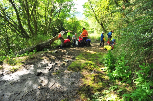 26 k 就是中雪山登山口, 這裡有一棵大倒木, 這裡太泥太濕滑,