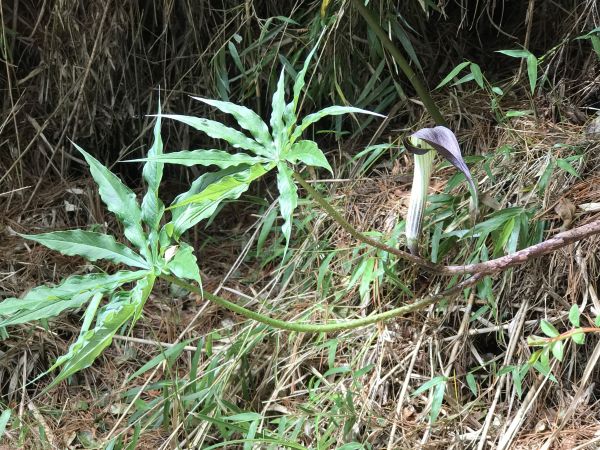 - 花長於「佛焰苞」內,4~6月由葉柄基部抽出,花序軸向前漸變細,花序軸末端直徑 0.1~0.2 公分,雌雄異株,也有少數雌雄同株