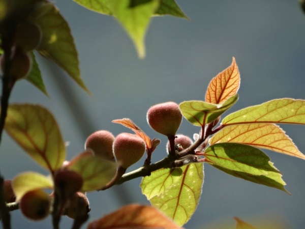 - 單葉,互生,剛長出來時為紅色,後逐漸變為綠色;常叢生於小枝條先端,長橢圓形至卵狀。表面粗糙,表裏兩面皆具有毛茸
