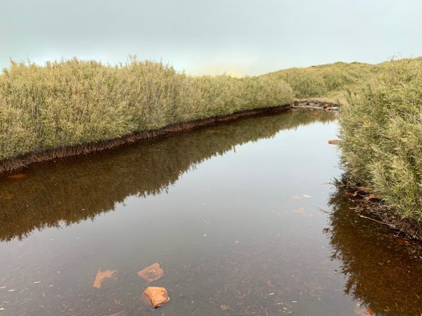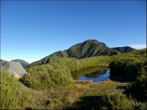 - 水在營地往大劍山方向北走,走劍南尖山與大劍山之間的鞍部, 循指標西北陡降溪澗中取水。