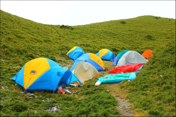 中層營地風大,夜間雨水不少,帳篷搭設要注意固定