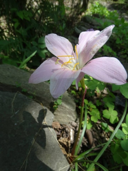 - 花單生鱗莖葉叢中,花梗上部中空,具 2 裂管狀苞片;花漏斗狀,下部細筒形,帶綠色,花瓣 6 枚,倒卵形,花期 4~9 月