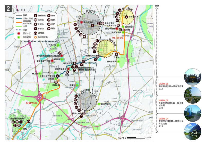 【內海之路:第二段】臺灣歷史博物館⮕茄拔天后宮 0 人想去 1 人去過 113 次點閱 想去 去過 行前準備 更多功能 更多功能 路況回報 路線評鑑 分享 分享至 Facebook LINE 山海圳 魚塭 水圳 自行車 台灣欒樹隧道 ( 圖 / 山腳貓 ) 路況回報 0則 回報路線近況,幫助其他山友的山旅更加順利喔! 前往回報 此路段為山海圳綠道的「內海之路」段(MSTW04–06),建議以單車或徒步完成任務。內海之路從臺灣歷史博物館出發,一路串連人文與自然風光。沿途可從展館了解臺灣多元族群與環境互動的歷史,接著穿越大排與高架綠地,映入眼簾的是芒果、芝麻、甘蔗等農田景致。路線進入新港社地方文化館與南科考古遺址區,展現平埔西拉雅族與史前文化的延續,讓行走綠道也像一場時光旅行。隨後路線轉入嘉南大圳南幹支線,兩側水閘、圳道與層疊田園交織成南部典型農村風貌。終點茄拔天后宮則為在地信仰中心,廟前大榕樹與村民的閒談聲,為這段旅程畫下最溫暖的句點。