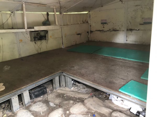 有鋪設軟墊,還算乾淨,戶外有2張長方形鐵椅,山屋後方有建議廁所,整體來說還堪用