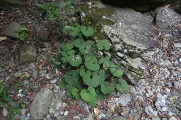 - 基生,具長葉柄,厚實且革質,葉色常綠,呈圓腎形,掌狀葉脈,葉緣為細齒狀,葉之上下面皆被有絨毛,成熟後則無毛,平均葉長約在5至15cm之間