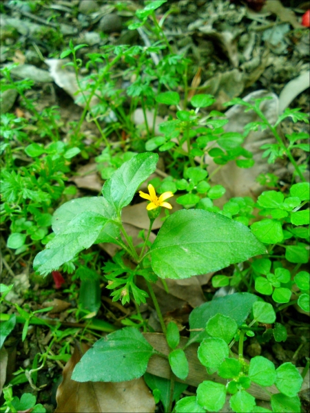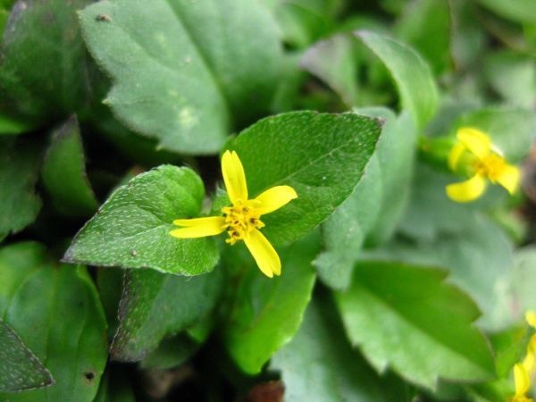 - 頭狀花序,頭花直徑約 1 公分,花序單一或數朵簇生,輻射狀排列,腋生,花冠黃色