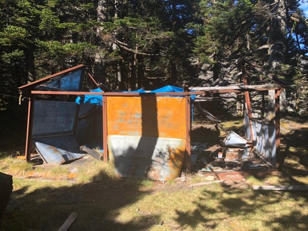山屋狀況還是損壞!也無帆布蓋頂,並無水源,應是可緊急避難用