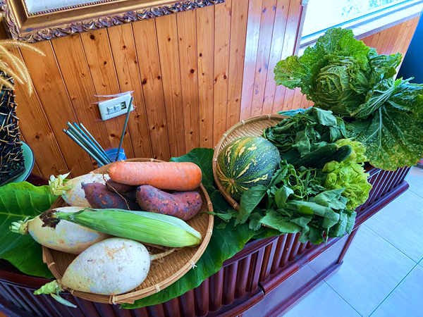 - 部落媽媽們利用在地的無毒食材來製作料理,例如蘿蔔、玉米、高麗菜、大白菜、地瓜、南瓜、櫛瓜、龍葵、樹豆與香菇等蔬菜,還有部落飼養的雞,也會烹煮從塔羅灣溪捕撈的新鮮苦花魚,搭配些許傳統辛香料、包括馬告和刺蔥來進行調味,並且使用創意的手法來烹調。