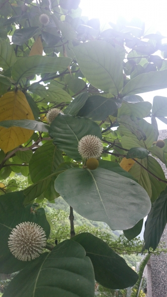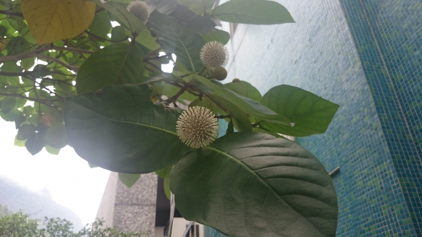 - 花多數,小,白色,開放時徑 0.2~0.3 公分,呈頂生的球形頭狀花序,花柱細長,伸出冠筒外