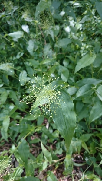 - 葉片寬大而薄,橢圓形或線狀橢圓形,疏被毛;葉舌長約 0.1 公分,膜質;葉鞘邊緣被細毛,全體密被疣狀毛;兩面近無毛,脈間具小橫脈,近基部邊緣被疣基長纖毛。