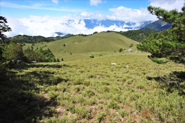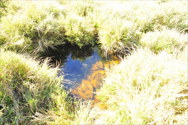 磐石中峰營地 不避風 活水源在主步道下方 順山溝下走約 200 公尺 有三個小小看天池, 沒有布條, 沒有路跡, 就順著山溝往下走 水質看起來還算是清澈,如果久旱不雨, 那就還要更下切去找水源 第一座森林續走 10 分鐘 下方還有一處比較平又避風的營地