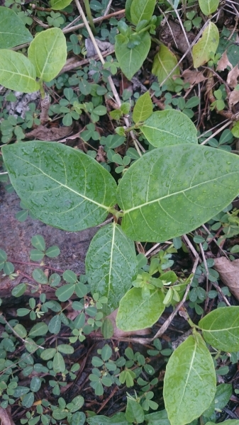 - 葉螺旋狀排列,但常叢生於小枝先端,卵形、卵狀長橢圓形至長橢圓形,大型葉長約 15~25 公分,寬 10~15 公分,革質或厚紙質,全緣或略呈波狀緣,表面糙糙而有光澤,背面光滑而顏色較淡,中肋於表面凹下而於背面隆起