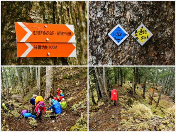 或是 烏拉佩裸岩前小平台,有指標指示右下切可達樹林間的取水點(水源下切570公尺到二溪合口處,來回約45分鐘)