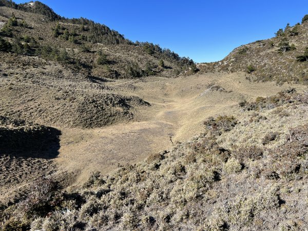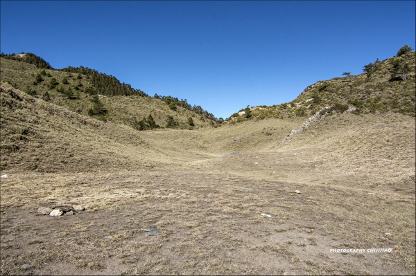 營地很大很平 營地左下切取水 來回 共 50 分鐘 取水的路不好走 若水量不大 要下切更深