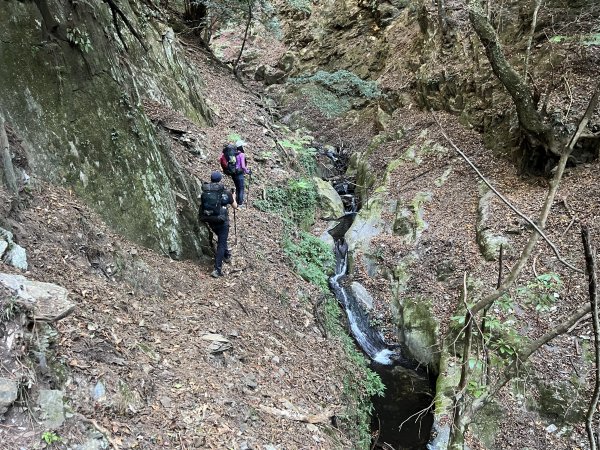營地前小溪最後水源先取水 背水 10 分鐘抵達 綠蔭罩頂的亞力士營地
