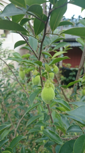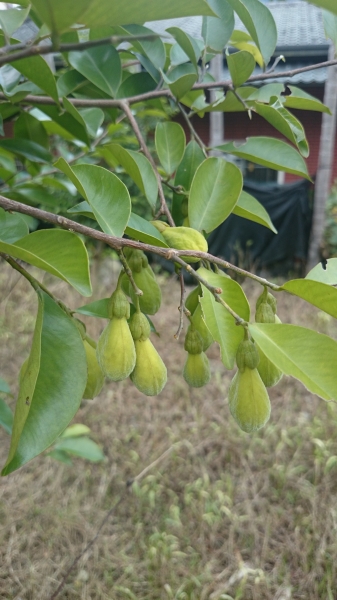- 果實似梨形,堅實有稀疏絨毛,長約 4 公分,寬 3 公分,厚 2 公分;果皮可分成兩邊,各有一顆深褐色種子;果核上端呈傘形,下端拉長,外皮堅硬,裡邊柔軟