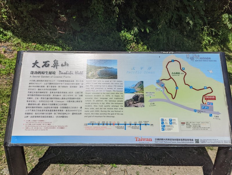 走木棧階梯, 有二座涼亭, 海天一線風景不錯, 太陽很曘, 很多遊客只走到第二座涼亭就返回, 也可以繼續走, 另一端有樹遮蔭, 比較不會曬太陽, 再走一小段馬路回來