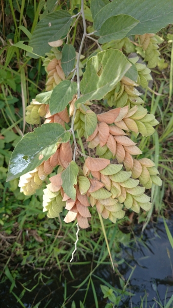 - 莢果長橢圓形,腫脹狀,長 0.7~1.2 公分,寬 0.6~0.7 公分,有毛茸,內有種子 2 枚