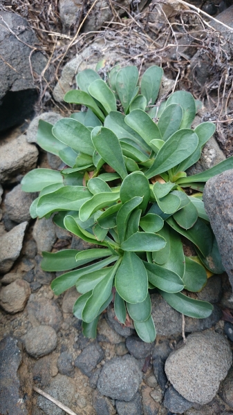 - 根生葉倒卵狀披針形至匙形,厚質,葉尖鈍形或圓形,葉基楔形,全緣,具葉柄,叢生