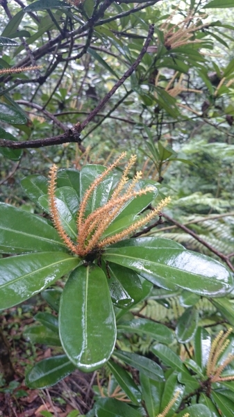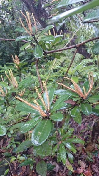 - 單生互生,但多數叢生於小枝條的先端,倒卵狀倒披針形或倒卵狀橢圓形,革質,全緣及邊緣略向後反捲,表裡兩面皆光滑無毛