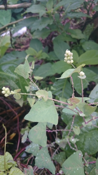 - 三角鹽酸、貫葉蓼、犁壁刺、犁壁藤、山蕎麥、老虎艽、退西草、退血草(台灣),貫葉蓼,Wahe-bakaigii(泰雅)、Zyarabi’tt(排灣)