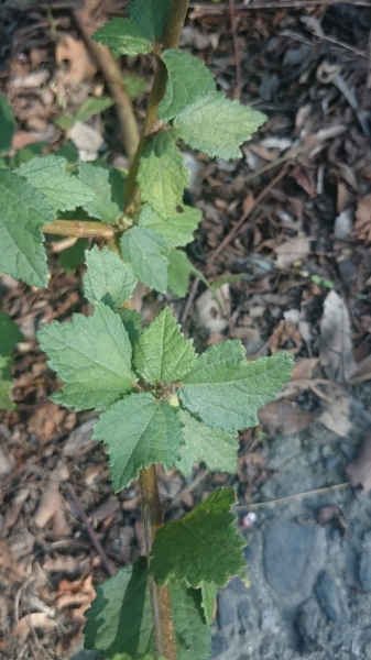 - 單葉互生,葉形變異大,上部葉卵形,不裂,下部葉廣卵狀菱形或橢圓形,三淺裂,端部銳狀、漸尖、尾狀銳尖,基部鈍、截狀或或略心形,葉緣不規則鋸齒,紙質,葉表面綠色,葉背灰白,密生單毛與星狀毛