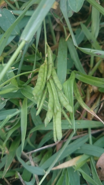 - 莢果扁筒形 4~9 節,成熟後,各節分別掉落。種子橢圓形褐色。