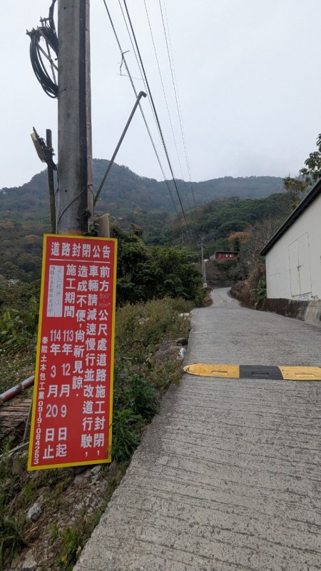 本次前往從產業道路起登直至登山口,未見封路路段 (封路告示 2024/12/09 到 2025/03/20),故尚可以從產業道路開車或騎車至登山口 (建議行前撥打電話至「泰陞土木包工業」確認,為本次路段維修之承包商)。但近登山口處路徑狹小,建議騎乘機車會是比較好的選擇。