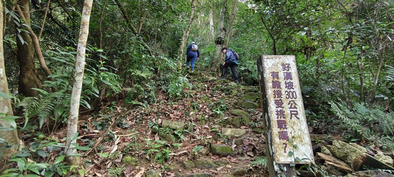 打牛崎步道一開始六百公尺為陡上路段(好漢坡),約至眺望峰之後漸趨平緩.