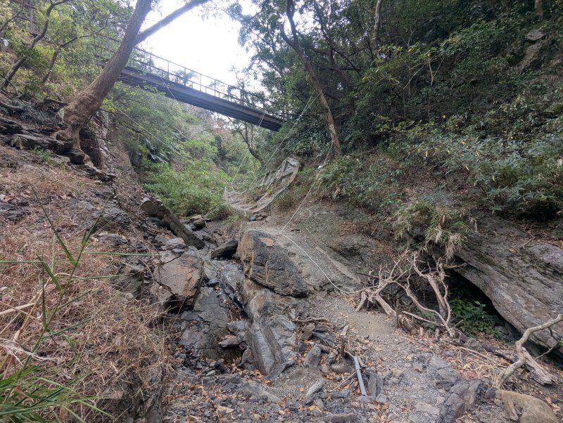 封閉的傾斜橋樑(2.2K)下方有便道可以安全通行