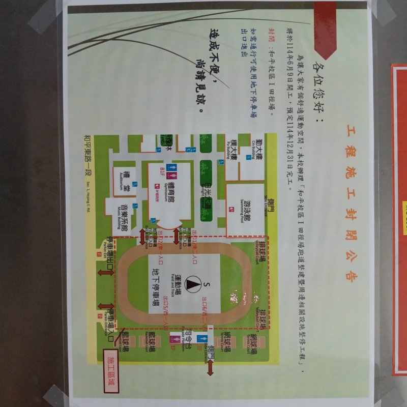 師大本部 道路狀況回報 2025-06-24 23:51 swtung 2025-06-24 回報 25.026009, 121.525030 0 0 師大本部 道路狀況 田徑場跑道整修,預定114/12/31完工。