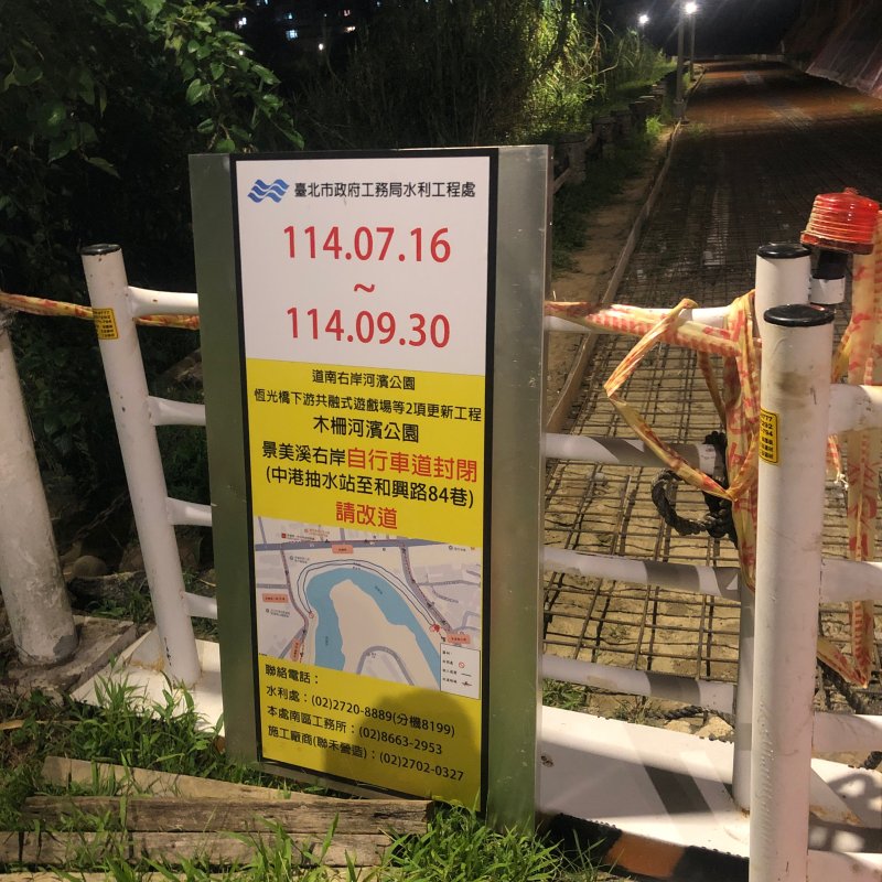 臺北大縱走第八段:捷運動物園站至捷運關渡站[河濱自行車道] 步道狀況回報 2025-08-24 21:34 WENG AN-TE 2025-08-24 回報 24.986750, 121.552800 0 0 臺北大縱走第八段:捷運動物園站至捷運關渡站[河濱自行車道] 步道狀況 步道維修