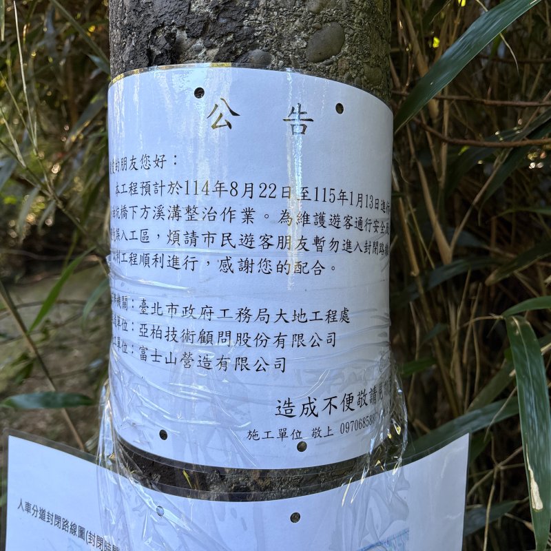環七星山人車分道-陽金公路段 道路狀況回報 2025-08-25 07:32 WeiLun Chiang 2025-08-25 回報 25.175970, 121.541900 0 0 環七星山人車分道-陽金公路段 道路狀況 維修封閉改道