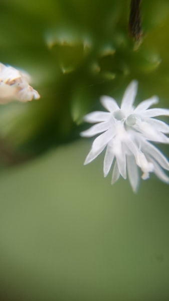 - 頭狀花序,白色筒狀花,呈總狀排列,外圍有葉狀苞片襯托;花謝後總苞變為褐色