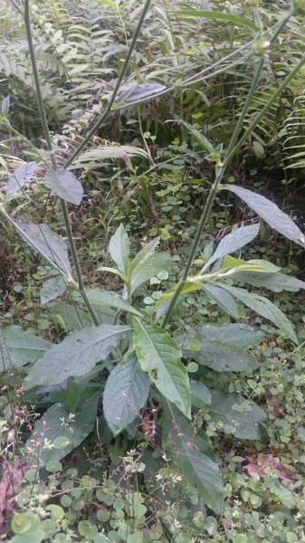 - 莖直立,株高 30~ 100 公分,上端花序分枝,二分叉狀,全株密生白色剛毛