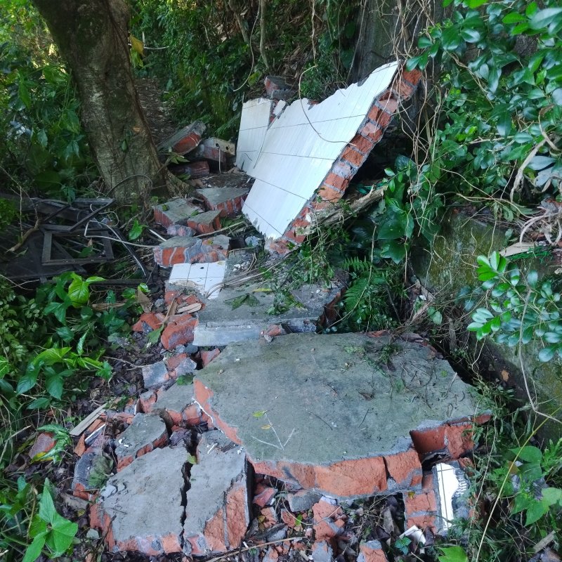 圓山水神社到劍潭山路上,博愛園旁牆壁倒塌,散落在路上,通過時要小心,建議繞道(爬上到頂才看到)(我的GPS定位不準)