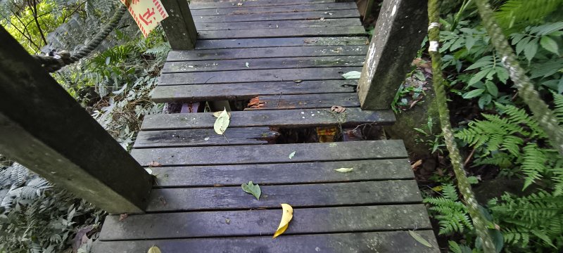 部分棧道毀損注意落腳處,石階光滑行走速度宜放慢走穩避免滑倒。