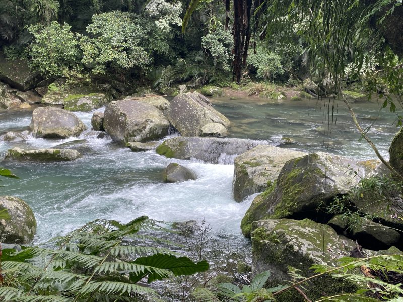 第三段從灣潭到威惠廟 途經灣潭古道-闊瀨古道-坊山坑古道-中坑古道 沿途很多過溪點, 有的溪很小很淺, 但有的溪水量較大 中間的石頭踏點相距較遠, 下雨過後溪水高漲水流湍急 建議下雨過後一週都不要去 (我選擇了下雨過後, 忘了要不斷過溪, 最後在近威惠廟的一個過溪點跨不過去跌進溪裡, 還好人沒事, 只是腳濕鞋進水站起來就好.)