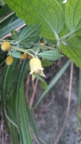 - 花序為聚繖花序,疏花,多為 3 朵,腋出;花被片 4 片,長卵形,先端銳尖,外側被金黃色絨毛