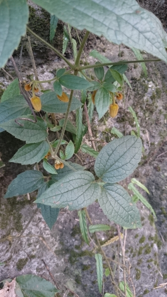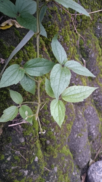 - 三出複葉,對生,具葉柄,小葉具短柄,卵狀長橢圓形,葉基圓形,葉尖銳尖,葉緣為粗鋸齒緣,主脈 5 條,兩面被銹色柔毛。
