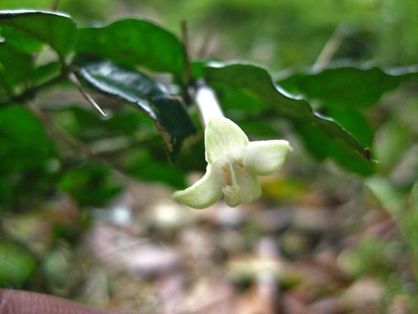 - 花單一或成對, 腋出,萼裂片 4,白色花冠筒長約 1.7 公分,裂片 4